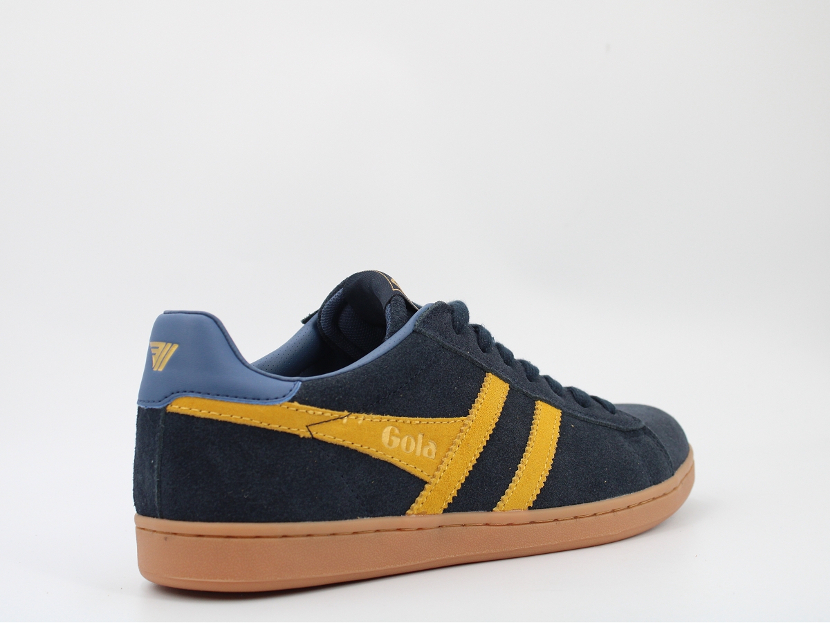 Lorsqu'il s'agit d'un entraîneur fiable, l'Equipe II Suede pour homme est un choix sûr. Monté sur une semelle en gomme, ce modèle à lacets en daim kaki épuré avec bordure Gola Wingflash bleu marine est polyvalent et peut être facilement porté avec des looks de tous les jours. La languette de talon jaune soleil donne une finition remarquable, équilibrant modernité et véritable héritage de baskets.