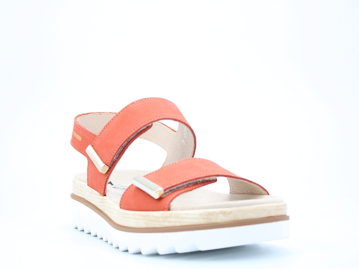 Femme Sandales Orange Cuir Velours. Avec son look sport et décontracté, cette sandale à plateforme garantit un confort incomparable. Profitez d'un confort incomparable grâce au SHOCK-ABSORBER, présent dans la semelle extérieure, et son intercalaire SOFT-AIR, qui contribuent à réduire les chocs inhérents à la marche. Les brides auto-agrippantes ajustables assurent un chaussant parfait. Sa doublure en cuir véritable vous garantit un standard élevé en matière de qualité et de confort. Mephisto Fondée par Martin Mickaeli (ingénieur en chaussure et designer) en 1965, la marque Méphisto commence son histoire avec la création d'un mocassin. De nombreuses techniques, méthodes et procédures sont développées afin de travailler au mieux le cuir et ainsi garantir des chaussures de haute qualité pour homme et femme. C'est en 1985 qu'est ouvert le premier magasin en Allemagne. De nos jours la marque est un gage de qualité et de confort.