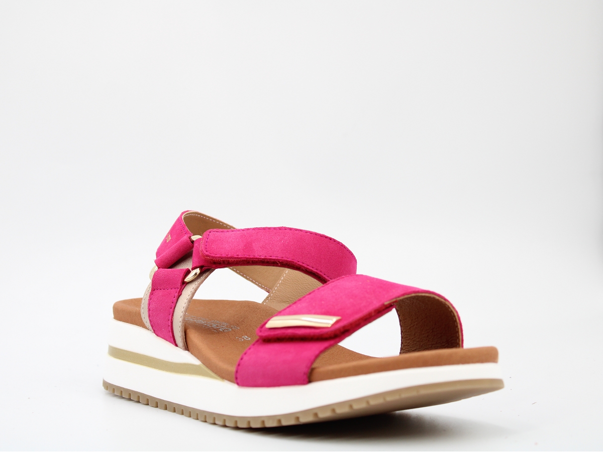 Dans un esprit sportif, cette sandale associe l'élégance et le confort. L'intercalaire SOFT-AIR, ainsi que le SHOCK-ABSORBER, contribuent à réduire les chocs au minimum pour une marche souple et sans fatigue. Avec la technologie AIR-RELAX, l'anatomie du pied est respectée afin d'éviter l'affaissement de la voûte plantaire. Cette sandale à brides avec bandes agrippantes est joliment décorée d'un ornement. La doublure en cuir offre un climat sain à l'intérieur de la chaussure.